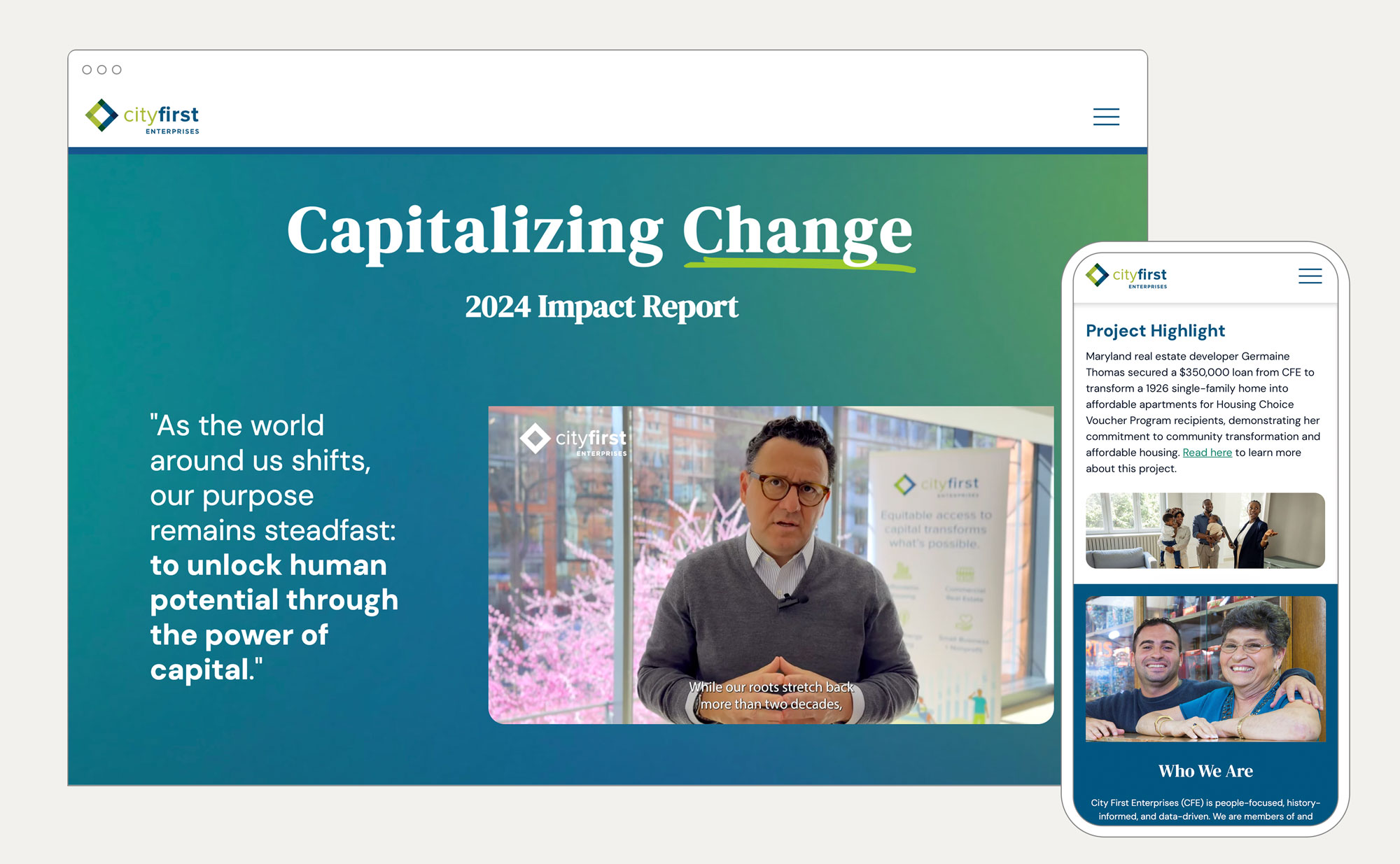 City First Enterprises needed their communications to match their mission. As a CDFI lending capital to people often left out of traditional financial systems, they wanted their annual impact reports to be as accessible and engaging as their work. Not dry numbers, but stories that connect. After five years of collaboration, we've helped them transform how they communicate impact.